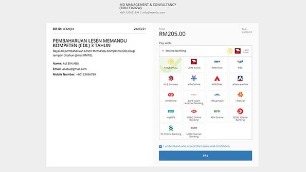 Anda kini diminta untuk membuat pembayaran secara online banking dan memilih bank yang anda gunakan. Semak kembali nombor telefon dan alamat email anda. Screen shot maklumat pembayaran dan simpan sebagai bukti.