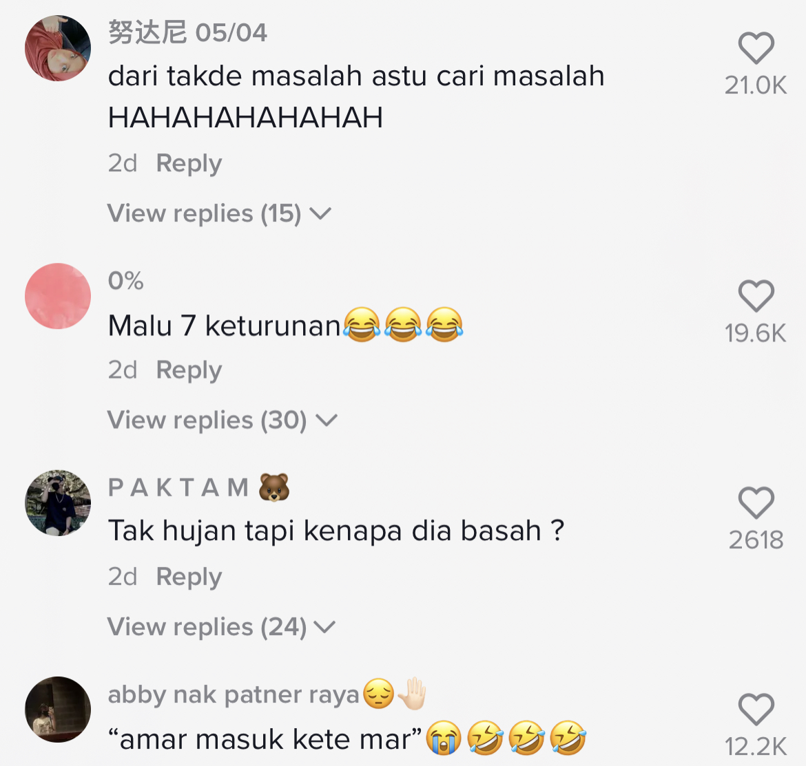 Berikut di bawah merupakan antara komen menarik daripada netizen di TikTok: