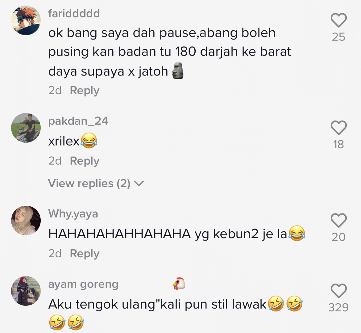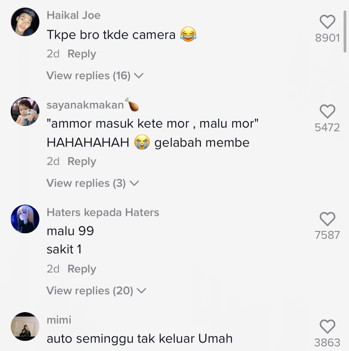 Susulan tularnya video itu yang kini mendapat sehingga 3.7M tontonan, 457.9K tanda suka dan 7.6K komen di TikTok, rata-rata netizen turut terhibur melihat remaja lelaki tersebut terjatuh ke dalam kolam.