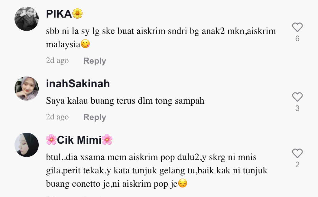 Lain pula dengan situasi yang dihadapi oleh seorang wanita apabila videonya tular di TikTok gara-gara berkongsi rasa aiskrim pop yang dibelinya telah mencuri perhatian ramai.