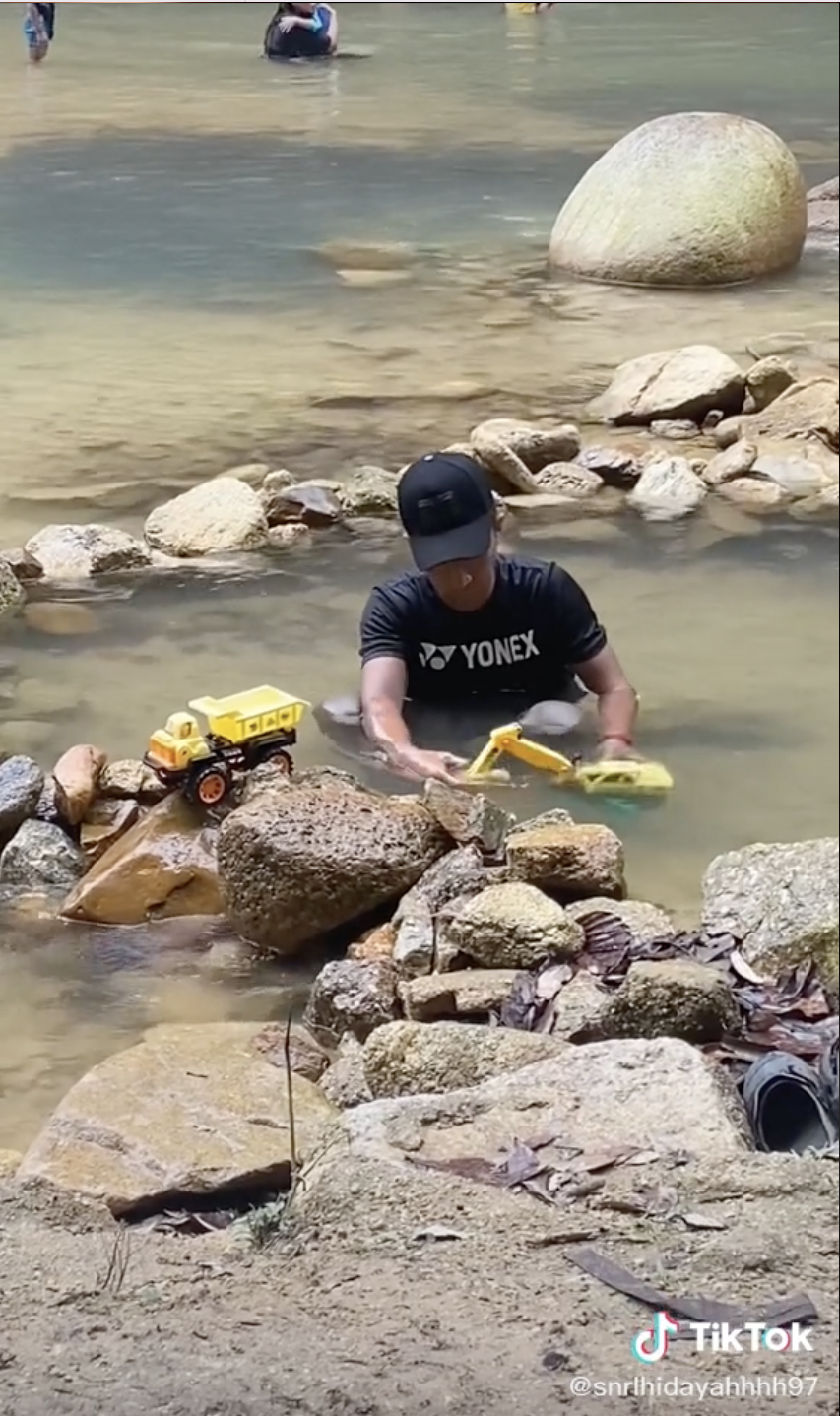 Begitu juga dengan satu video yang tular baru-baru ini memaparkan seorang lelaki sedang syok bermain mainan di kawasan air terjun telah mendapat perhatian ramai.