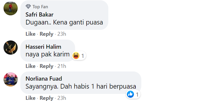 "Sayangnya, dah habis satu hari berpuasa" – Netizen