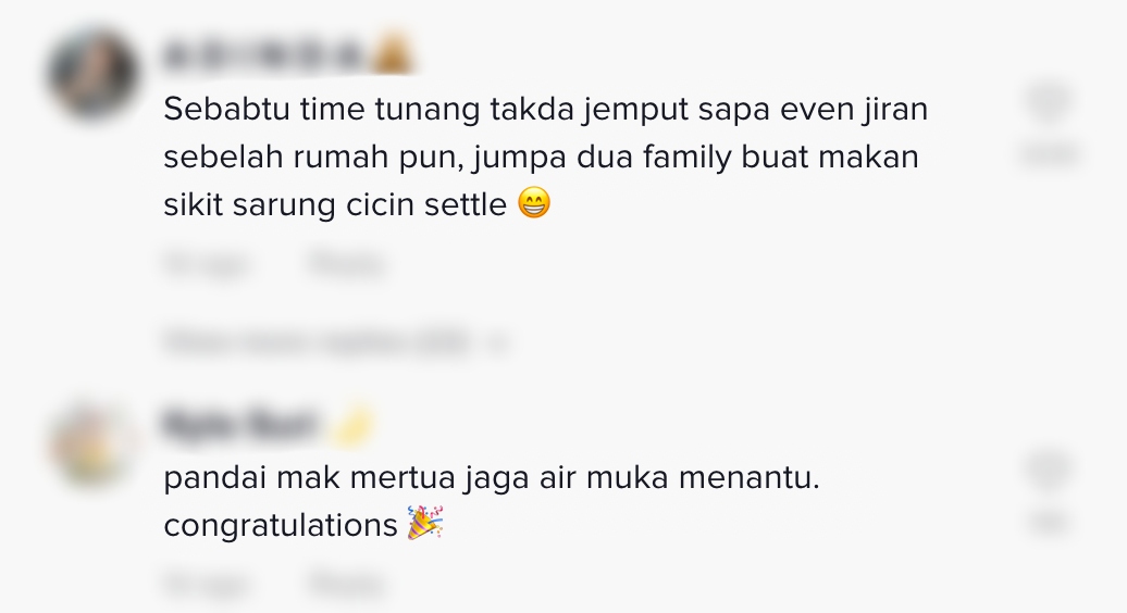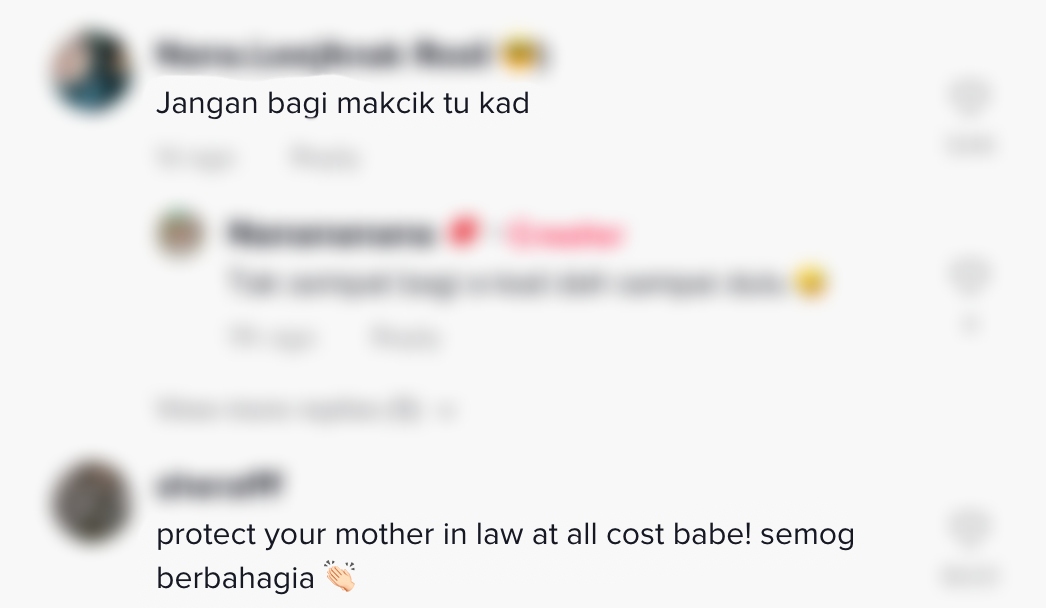 Sementara itu, tinjauan di ruangan komen mendapati rata-rata netizen turut memuji tindakan ibu mentuanya itu.