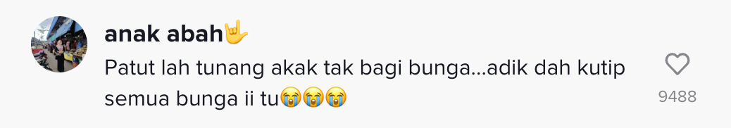 Budak itu kemudian memberikan bunga tersebut kepada ibunya dan memasuki kereta. Difahamkan, anaknya itu akan memetik bunga hari-hari dan memberikan kepadanya.