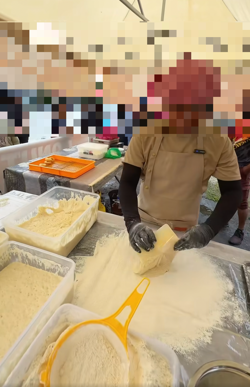 Sambil membuat mimik muka yang ghairah, peniaga itu dilihat dia menjual donut tersebut dengan menggunakan ayat "berayaq, berayaq, jet lagi".