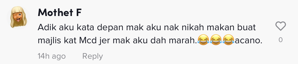 "Okay good idea gak ni sebab masa majlis sebenar tak dapat nak jemput ramai so kalau buat post wedding kat McD pun macam best" – Netizen