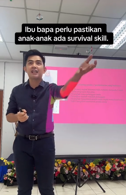 Menerusi video itu, dia menasihati pelajarnya untuk memiliki 'survival skill' kerana kemahiran kendiri amatlah penting terutama sekali jika berdepan dengan situasi tidak terjangka.