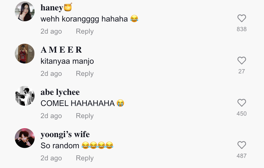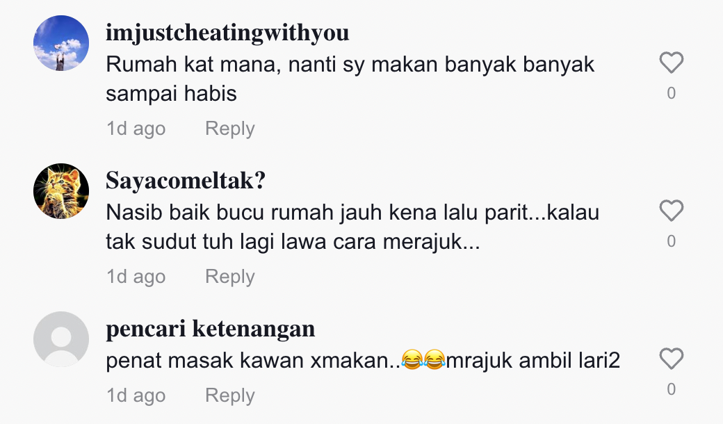 Sementara itu, tinjauan di ruangan komen mendapati rata-rata netizen turut terhibur dan memberikan pelbagai reaksi mereka.