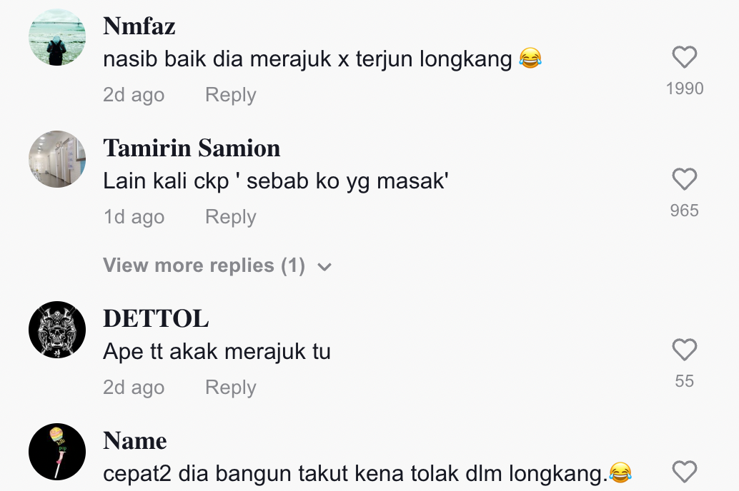 "Nasib baik dia merajuk tak terjun longkang" – Netizen