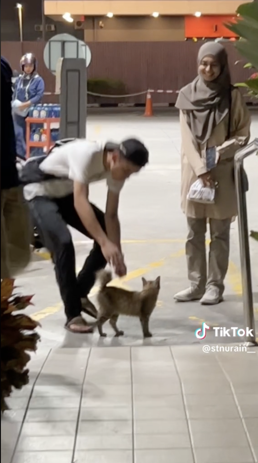 Dapat dilihat rakannya itu memanggilnya beberapa kali untuk meminta tolong mengalihkan kucing tersebut.