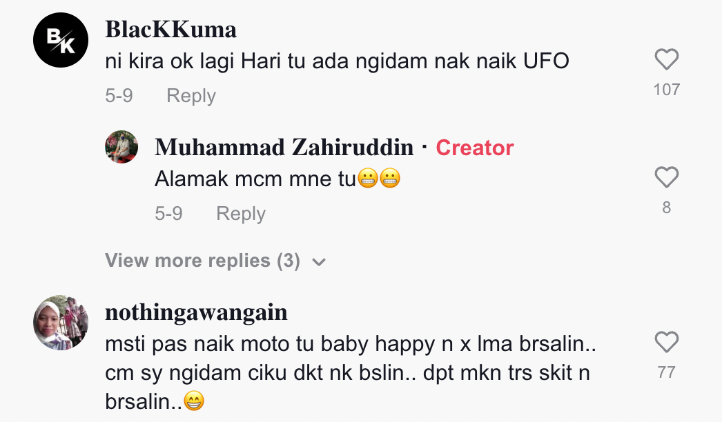 "Mesti lepas naik motor tu baby happy" – Netizen