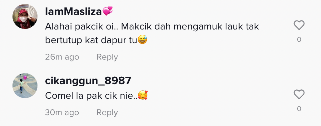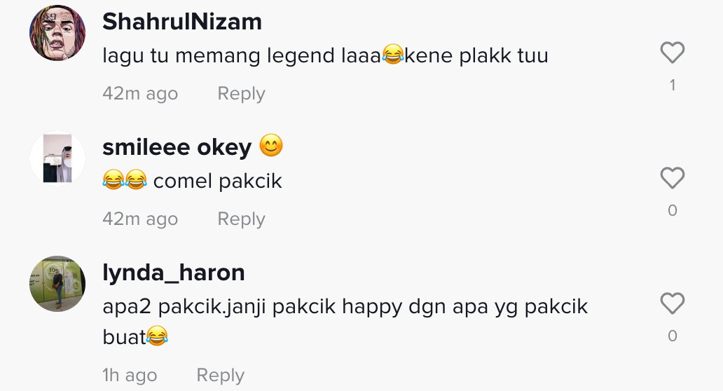 Sementara itu, tinjauan di ruangan komen mendapati rata-rata netizen turut terhibur melihat gelagat pak cik tersebut.