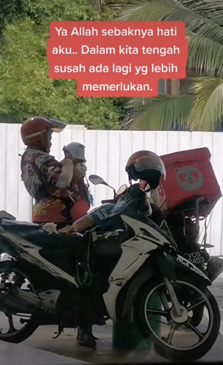 Kelihatan dia semasa itu sedang berada di sebuah stesen minyak bersama dengan anaknya. Namun, dia kemudian ternampak seorang wanita yang merupakan rider foodpanda.