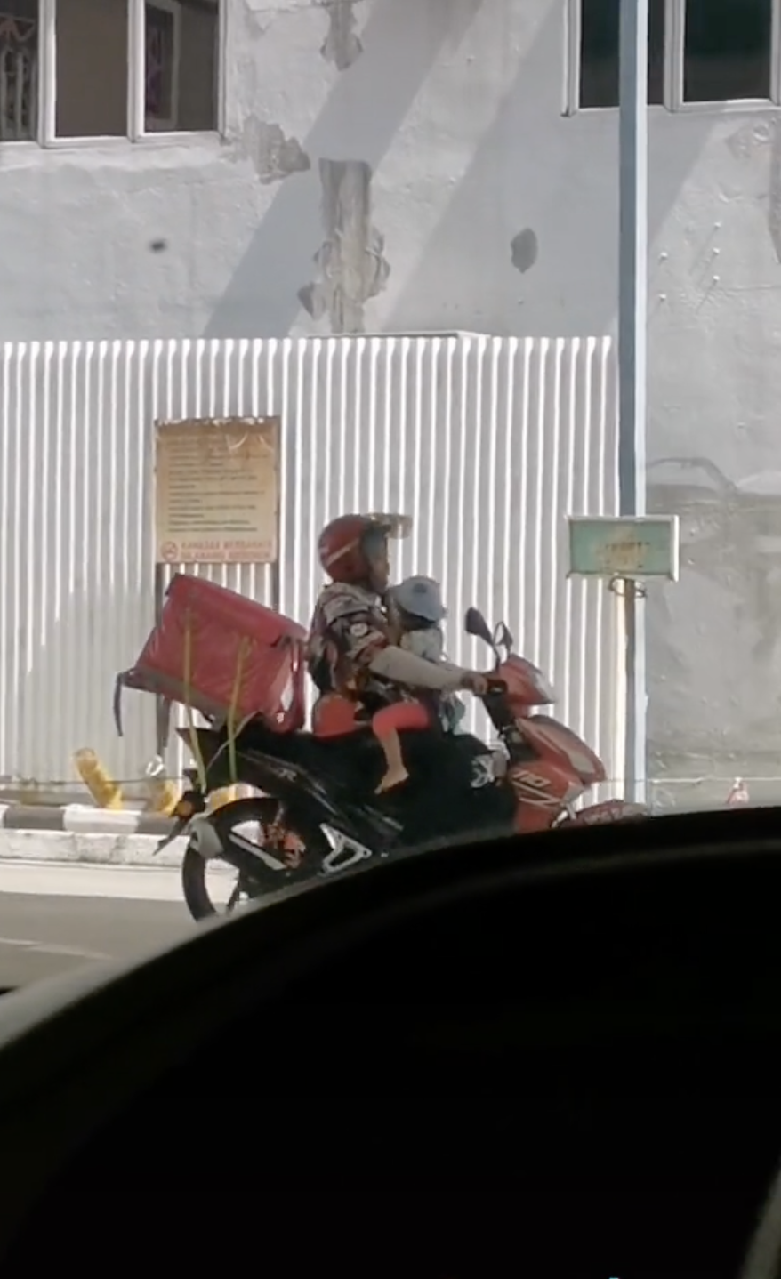 “Meruntun Jiwa Tengok” – Bawa Anak Ikut Hantar Pesanan, Akak Rider Ini Undang Sebak Ramai