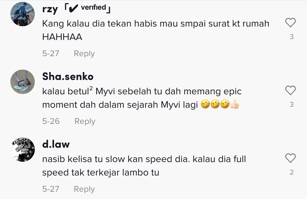 "Nasib Kelisa tu slow kan speed dia. Kalau dia full speed tak terkejar lambo tu" – Netizen