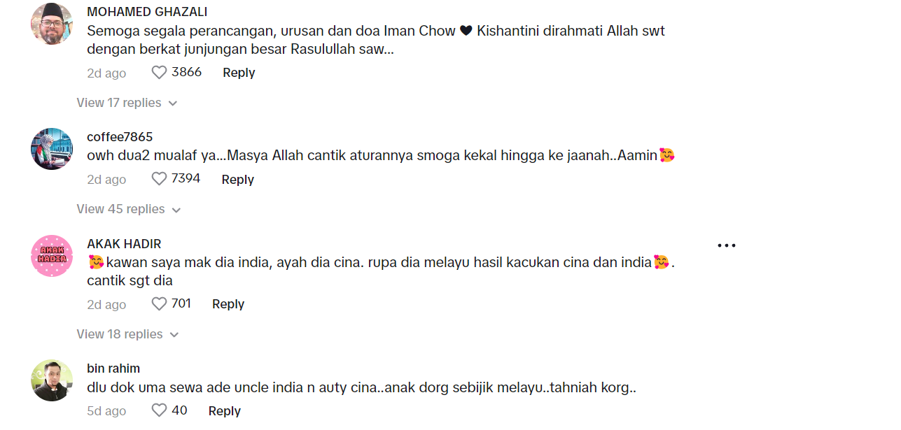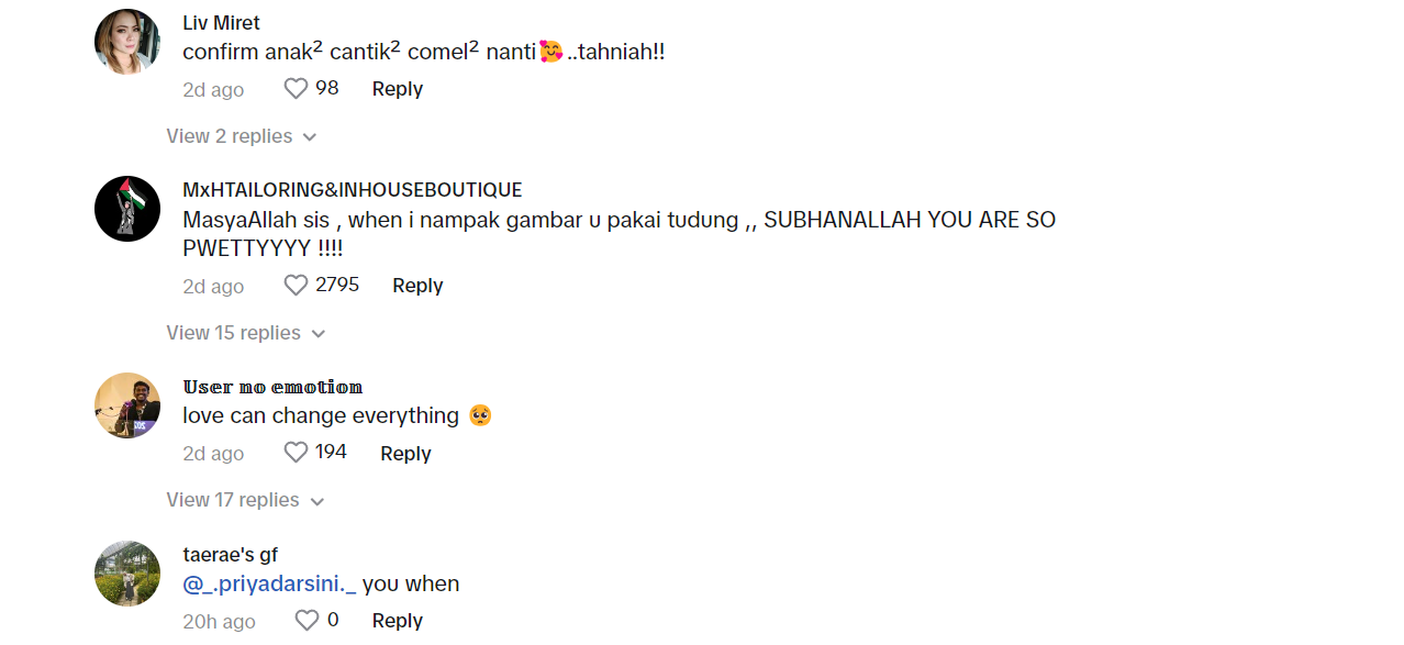 Berikut di bawah adalah antara komen daripada netizen di TikTok: