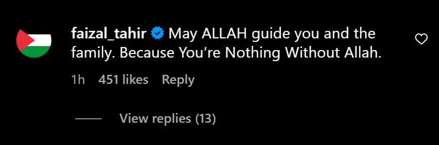 Faizal dilihat memberi komen mengingatkan Salah bahawa dia bukanlah siapa-siapa tanpa Allah disamping mendoakannya supaya Allah memberi petunjuk kepadanya dan keluarga.