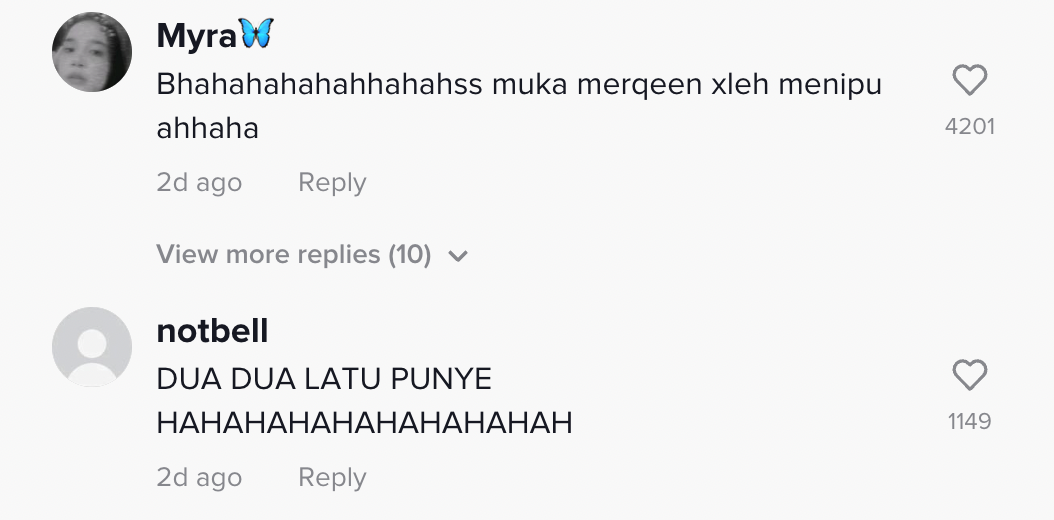 Berikut di bawah adalah antara komen daripada netizen di TikTok: