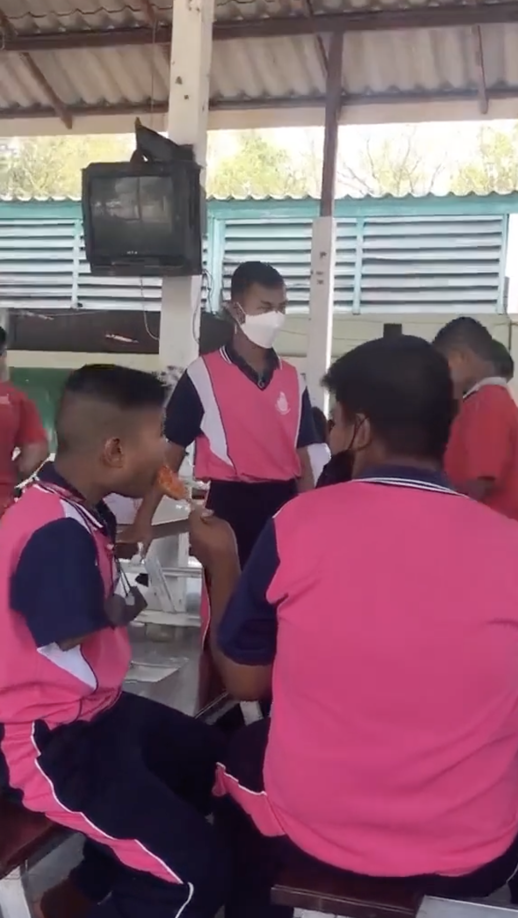 Menerusi video tersebut, kelihatan seorang individu berkongsi rakaman ketika sesi rehat di sebuah sekolah.