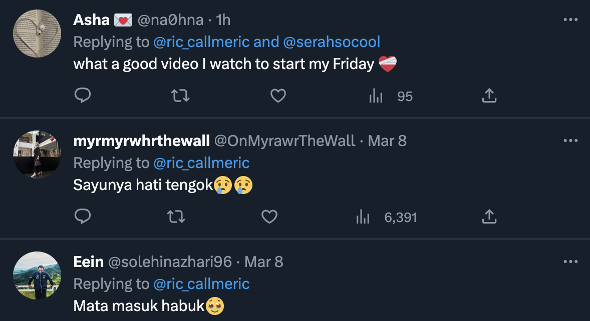 Ketika artikel ini ditulis, video berkenaan telah meraih 193.9K views, 7,877 retweets dan 17.3K likes di Twitter.