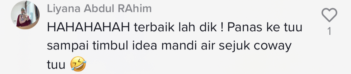 "Mungkin cuaca panas, rumah nenek tak ada aircond. Jadi, mandi dengan air Coway baru sejuk sikit" – Netizen
