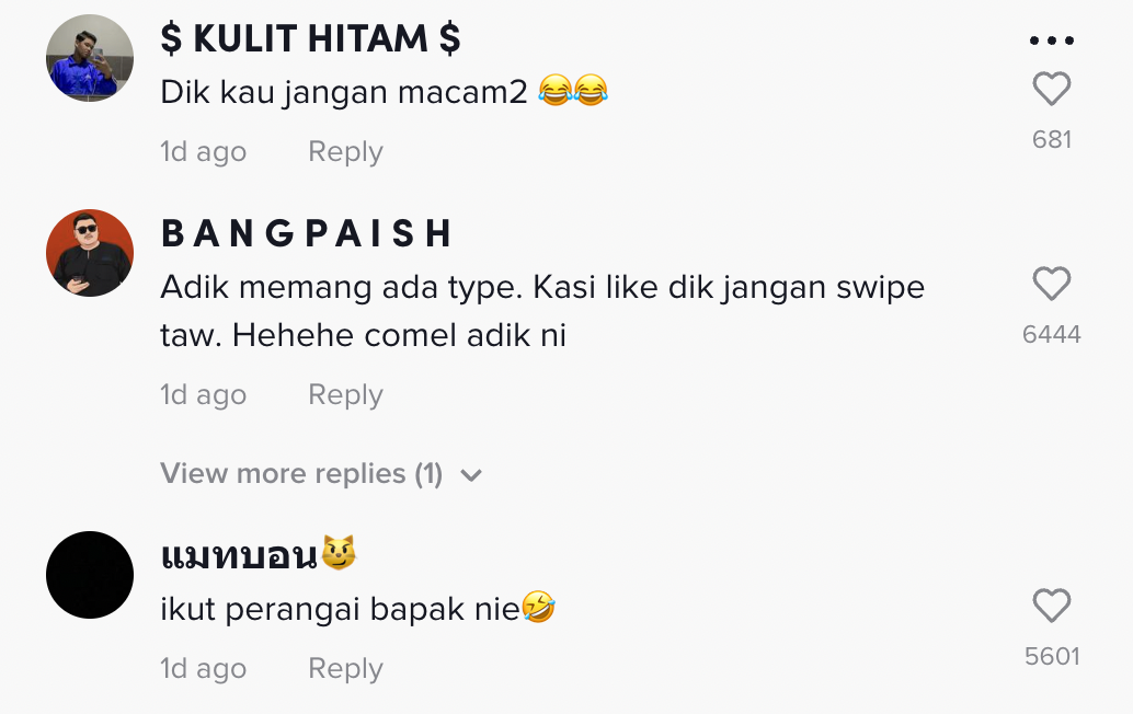 "Adik memang ada type. Kasi like dik jangan swipe tau. Hehehe comel adik ni" – Netizen