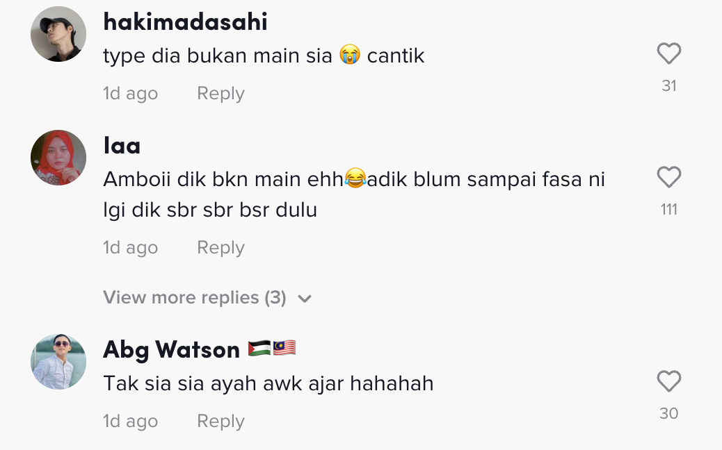 Berikut di bawah adalah antara komen menarik daripada netizen di TikTok: