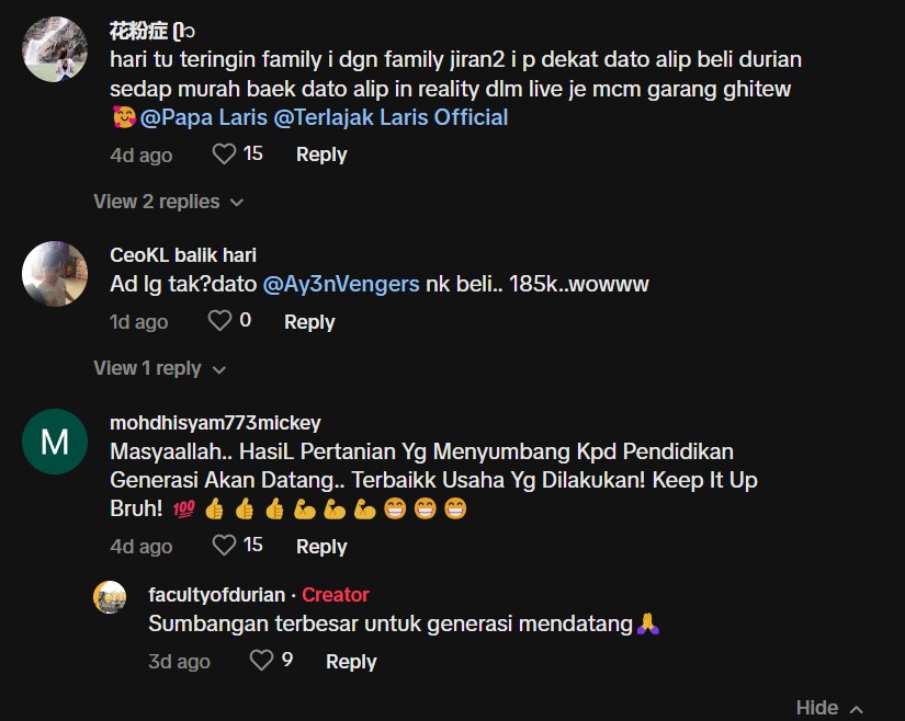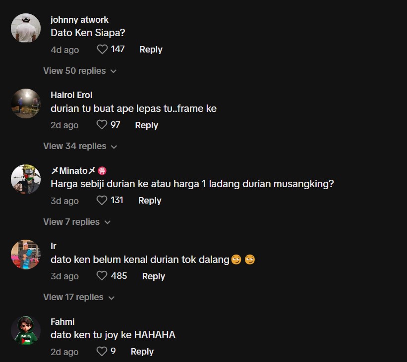"Wow, gila untuk sebiji durian haha" – Netizen
