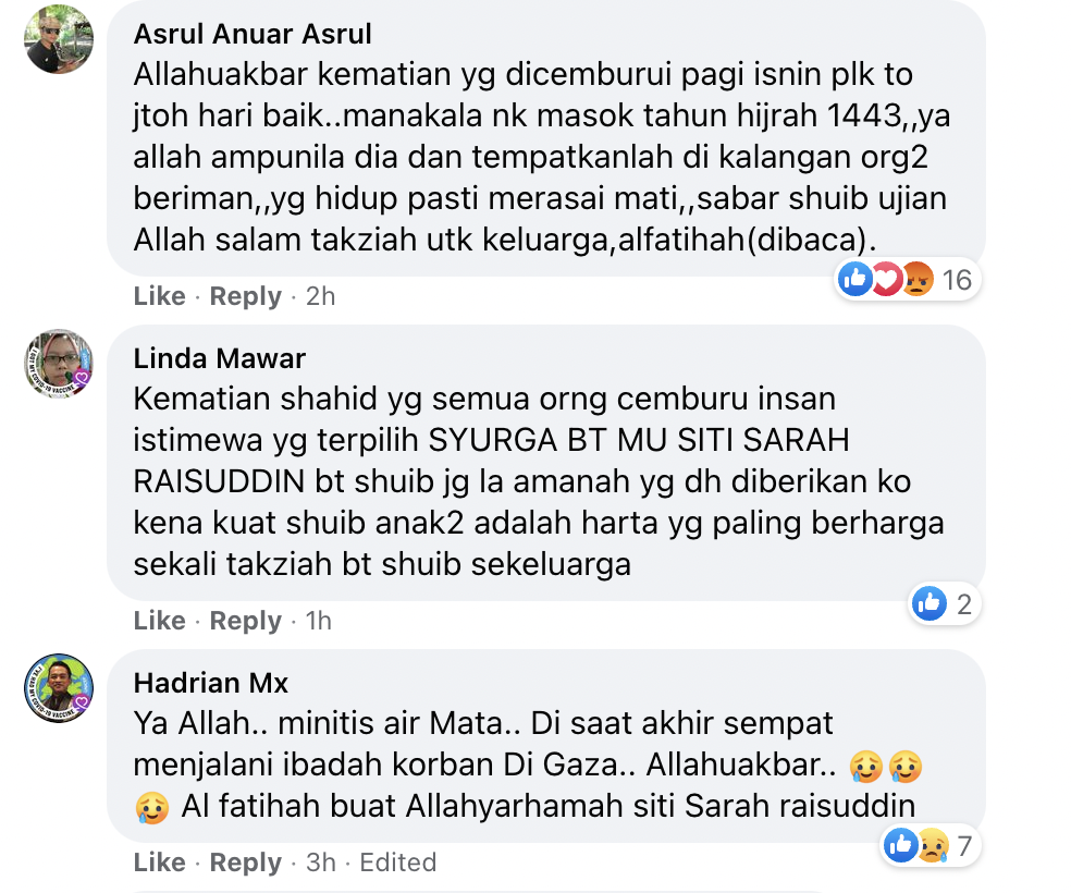 "Kematian syahid yang semua orang cemburu, insan istimewa yang terpilih" – Netizen
