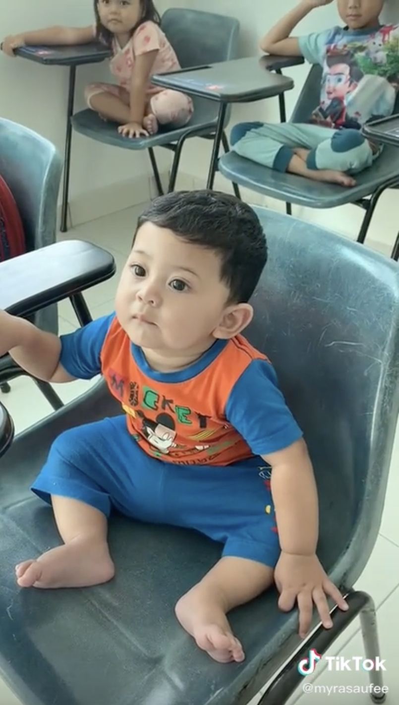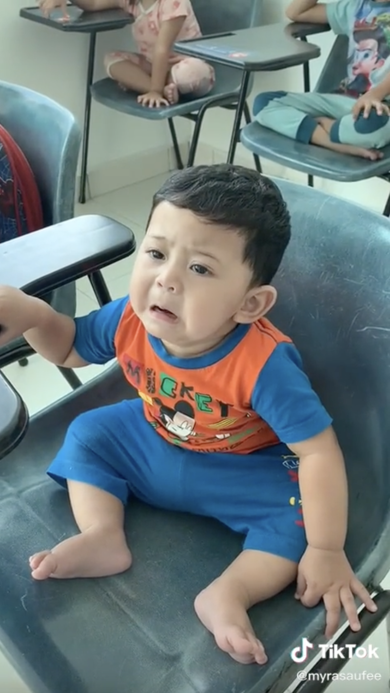 Menerusi video yang dimuat naik oleh @myrasaufee di TikTok, kelihatan rakaman menunjukkan seorang budak lelaki sedang berada di dalam sebuah kelas.