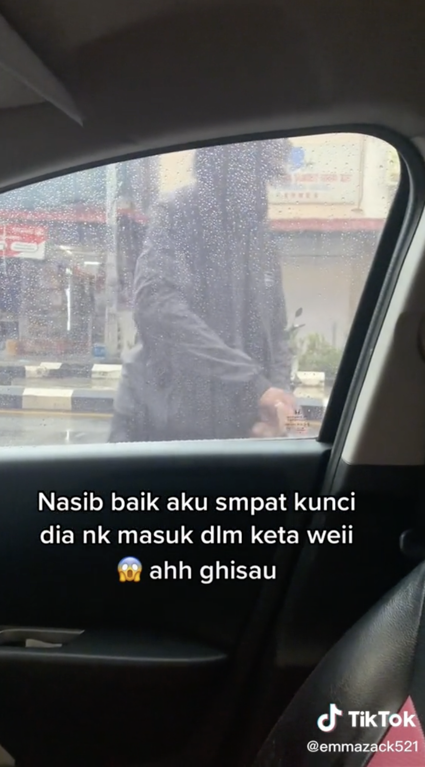 Situasi itu membuatkan wanita tersebut ketakutan dan sempat merakam kejadian tersebut. Mujur saja dia mengunci keretanya itu. Lelaki berkenaan akhirnya beredar dari keretanya.