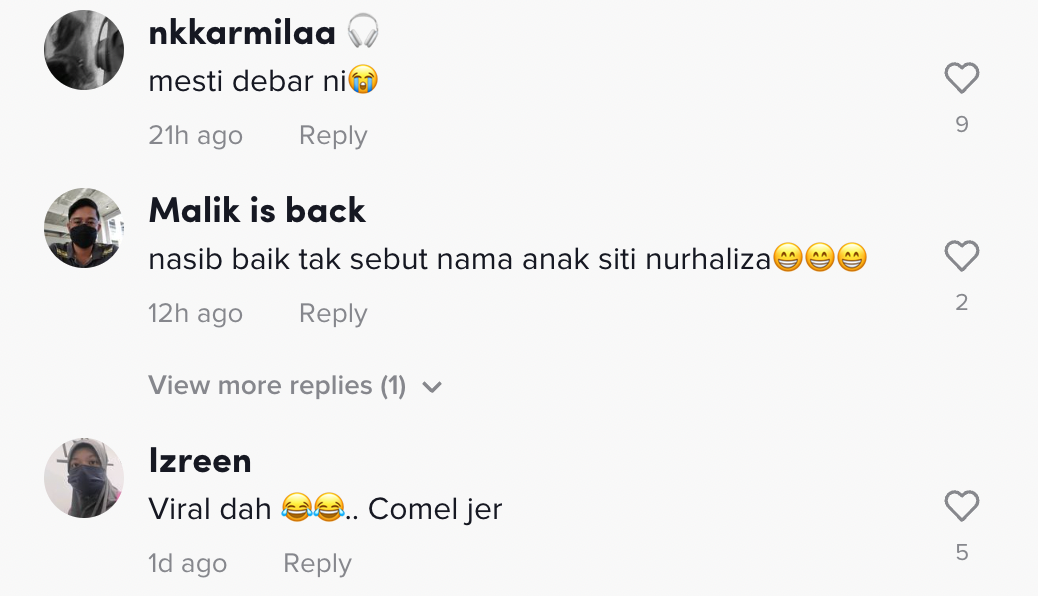 Berikut di bawah adalah antara komen menarik daripada netizen di TikTok: