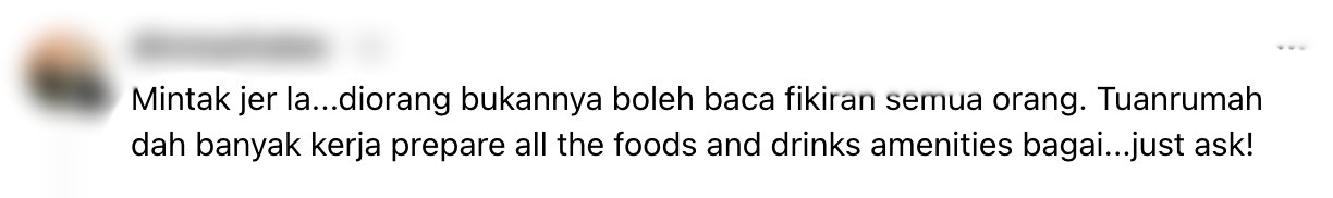Jadi pendapat anda bagaimana? Tuan rumah perlu sediakan, atau kalau nak tetamu boleh minta saja?