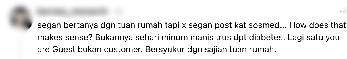 Perkara itu menjadi perdebatan ramai di media sosial, di mana ada yang menyuruh agar meminta sahaja air kosong pada tuan rumah.