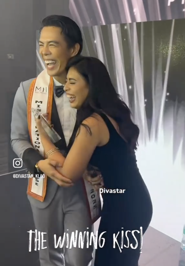 Dalam video yang dimuat naik di TikTok, Yazmin yang dilihat mengenakan gaun hitam labuh, memeluk dan mencium kekasihnya tu sejurus pengumuman kemenangan dibuat.
