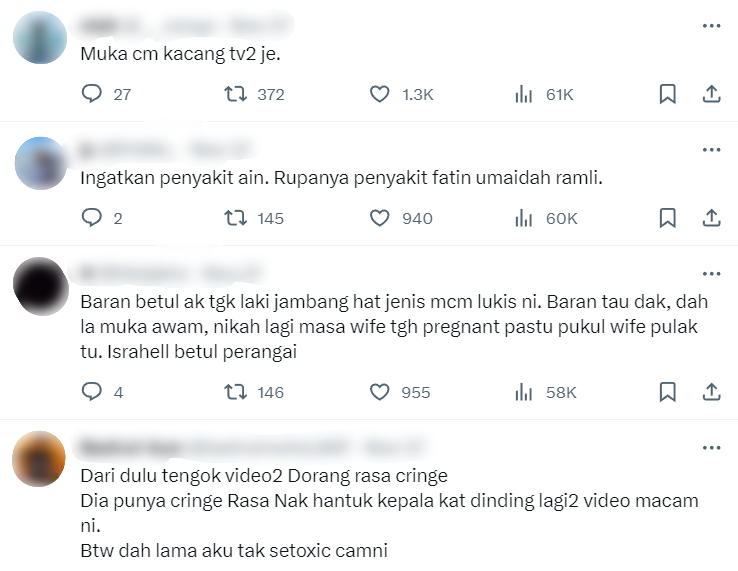 Rata-rata netizen terutamanya golongan wanita, begitu terganggu dengan isu berkenaan sehinggakan ada yang memuat naik semula video lama daripada influencer tersebut.