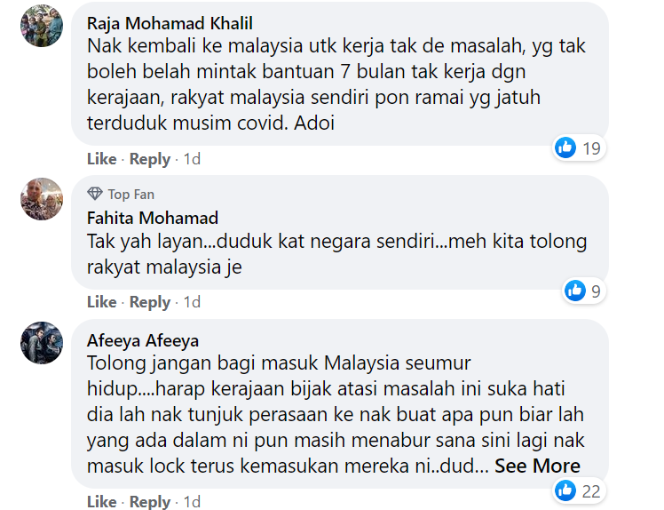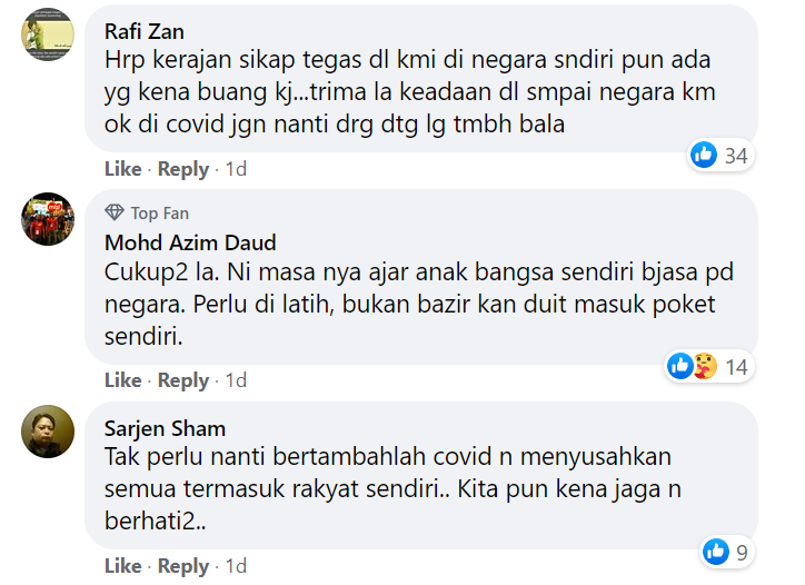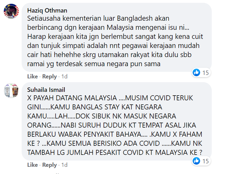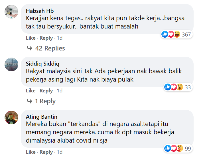 Kebanyakan netizen meluahkan agar kerajaan dapat tangani sementara kemasukan pekerja berkenaan ke Malaysia oleh kerana wabak pandemik yang semakin teruk di nagara ini.