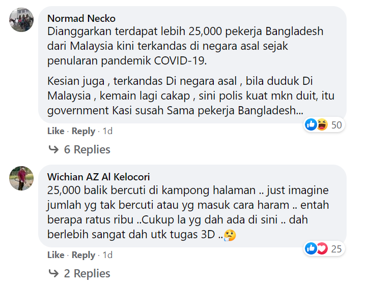 Namun, ianya telah dianggarkan terdapat lebih 25,000 pekerja Bangladesh dari Malaysia kini terkandas di negara asal sejak penularan pandemik Covid-19.