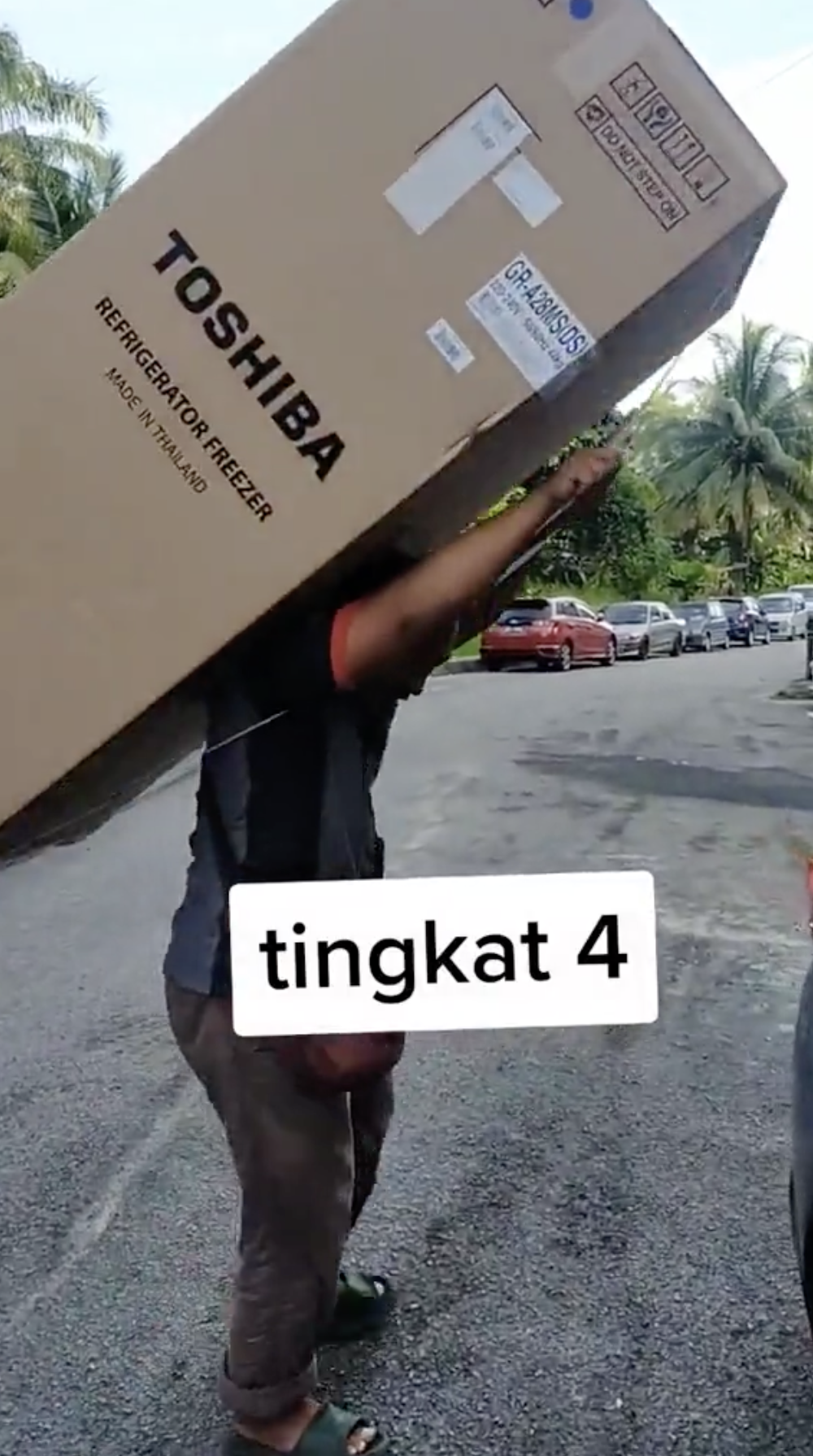 Netizen Salute Tengok Abang Ini, Angkat Peti Sejuk Ke Rumah Pelanggan Sampai Tingkat 4