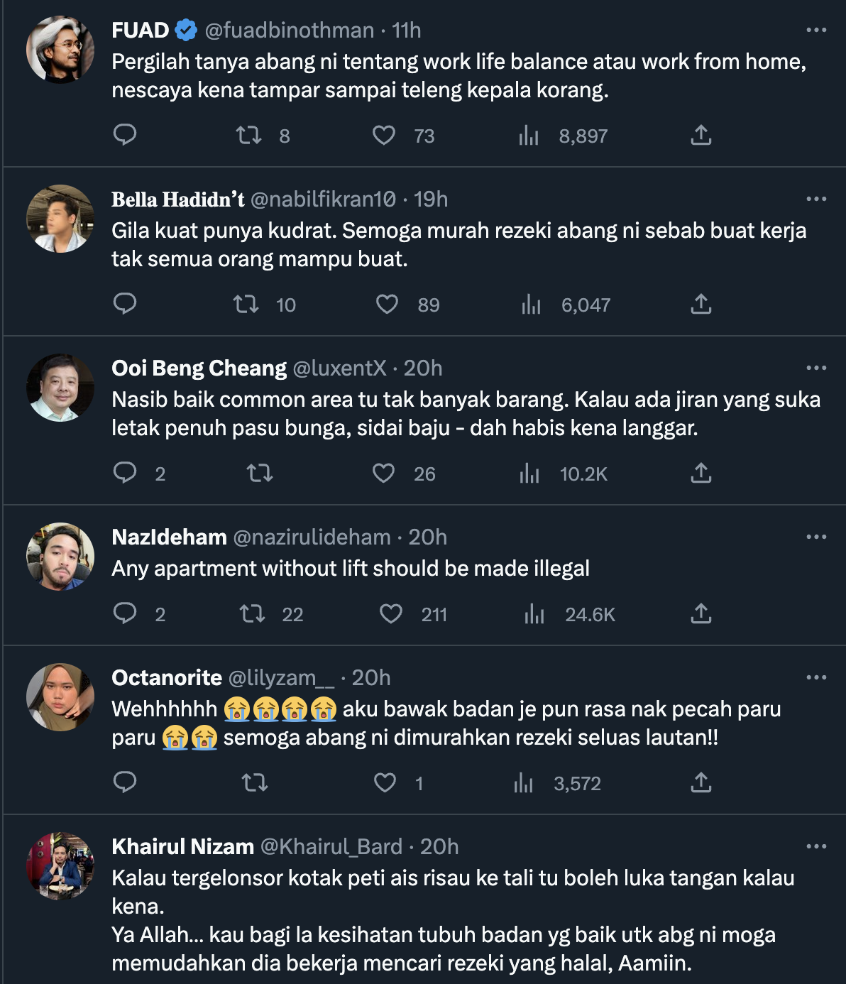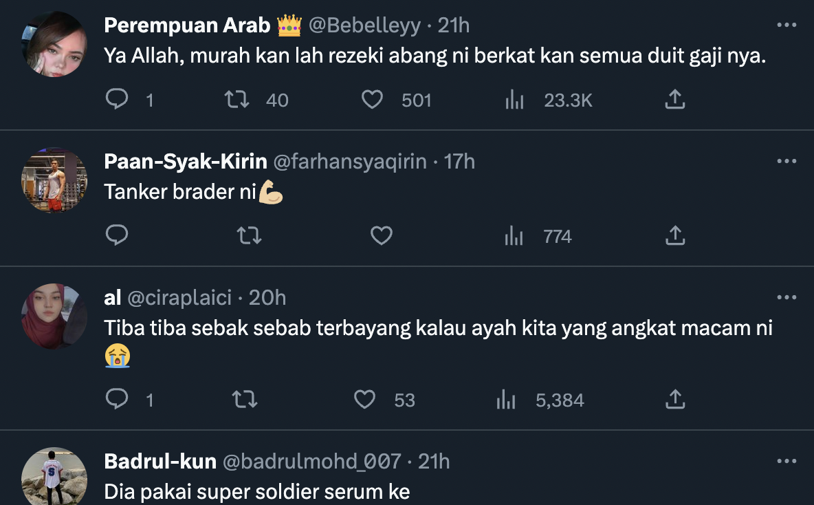 "Gila kuat punya kudrat. Semoga murah rezeki abang ni" – Netizen