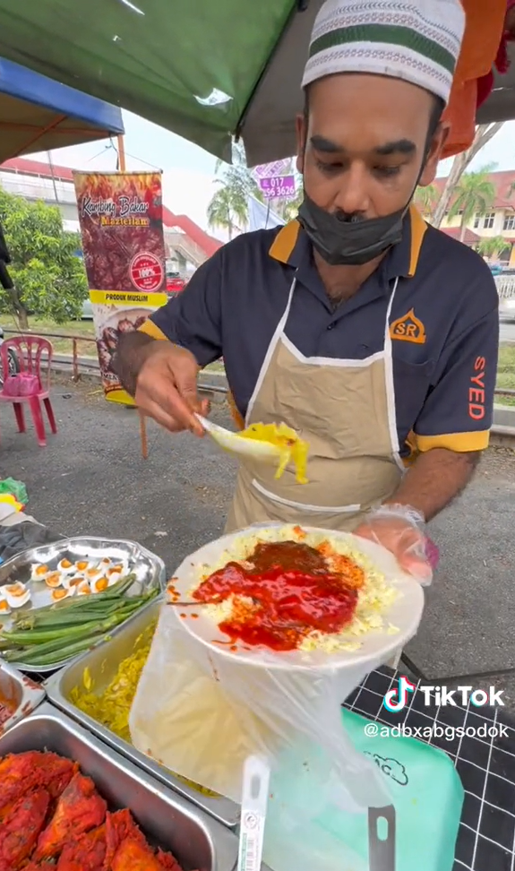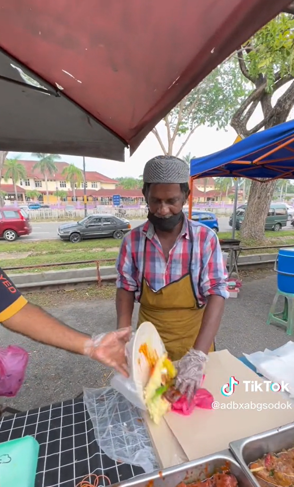 Menerusi video yang dimuat naik oleh @adbxabgsodok di TikTok, kelihatan seorang individu sedang membeli nasi kandar bagi juadah berbuka puasa di sebuah gerai mamak di bazar Ramadan.