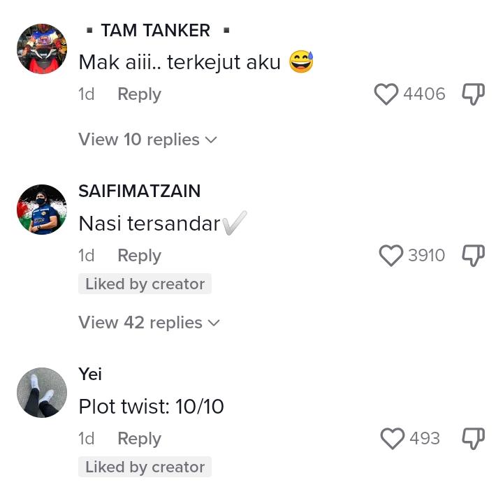 Berikut di bawah merupakan antara komen menarik daripada netizen di TikTok: