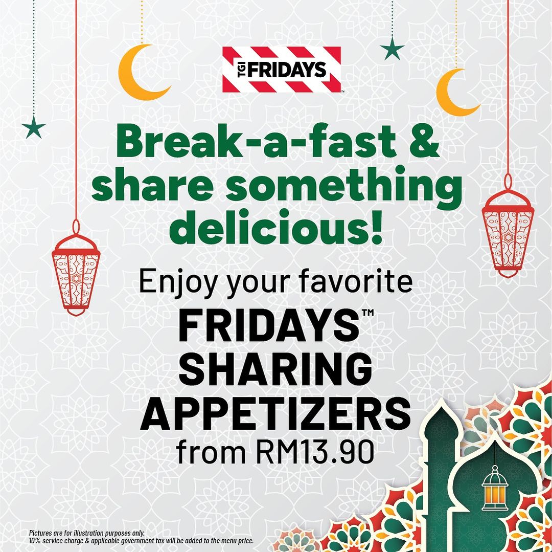 Nikmati masa berkualiti bersama yang tersayang di TGI Fridays, di mana anda boleh menikmati Ramadan Sharing Appetizer mereka dengan harga bermula dari hanya RM13.90. Dari hidangan laut hingga onion rings, ini adalah tawaran yang pasti akan membuat perut dan poket anda gembira!
