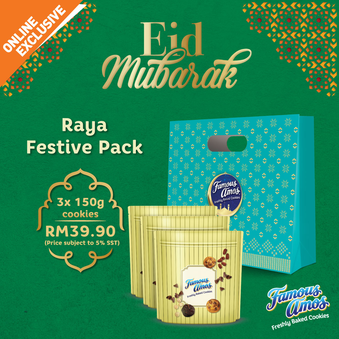 Sama ada anda membeli hadiah untuk orang tersayang atau menceriakan diri sendiri pada Ramadan ini, anda boleh membuat pesanan untuk tiga paket biskut Famous Amos dengan harga RM39.90.