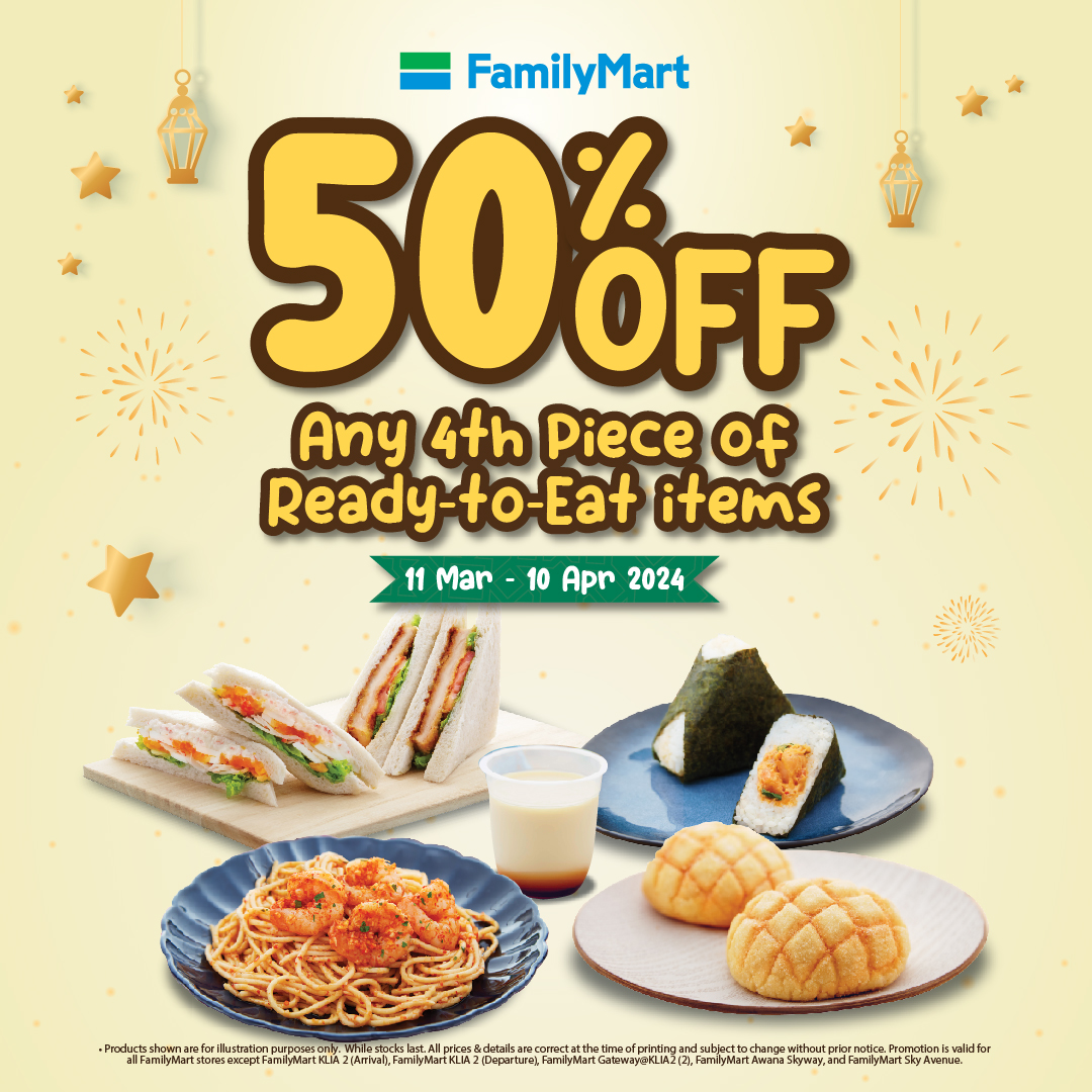 Bersedia untuk sahur dan buka puasa dengan pelbagai pilihan sedap dari FamilyMart seperti onigiri, bento box, pencuci mulut dan lebih banyak pilihan Ready-To-Eat sambil menikmati diskaun menarik 50% untuk barang keempat anda.