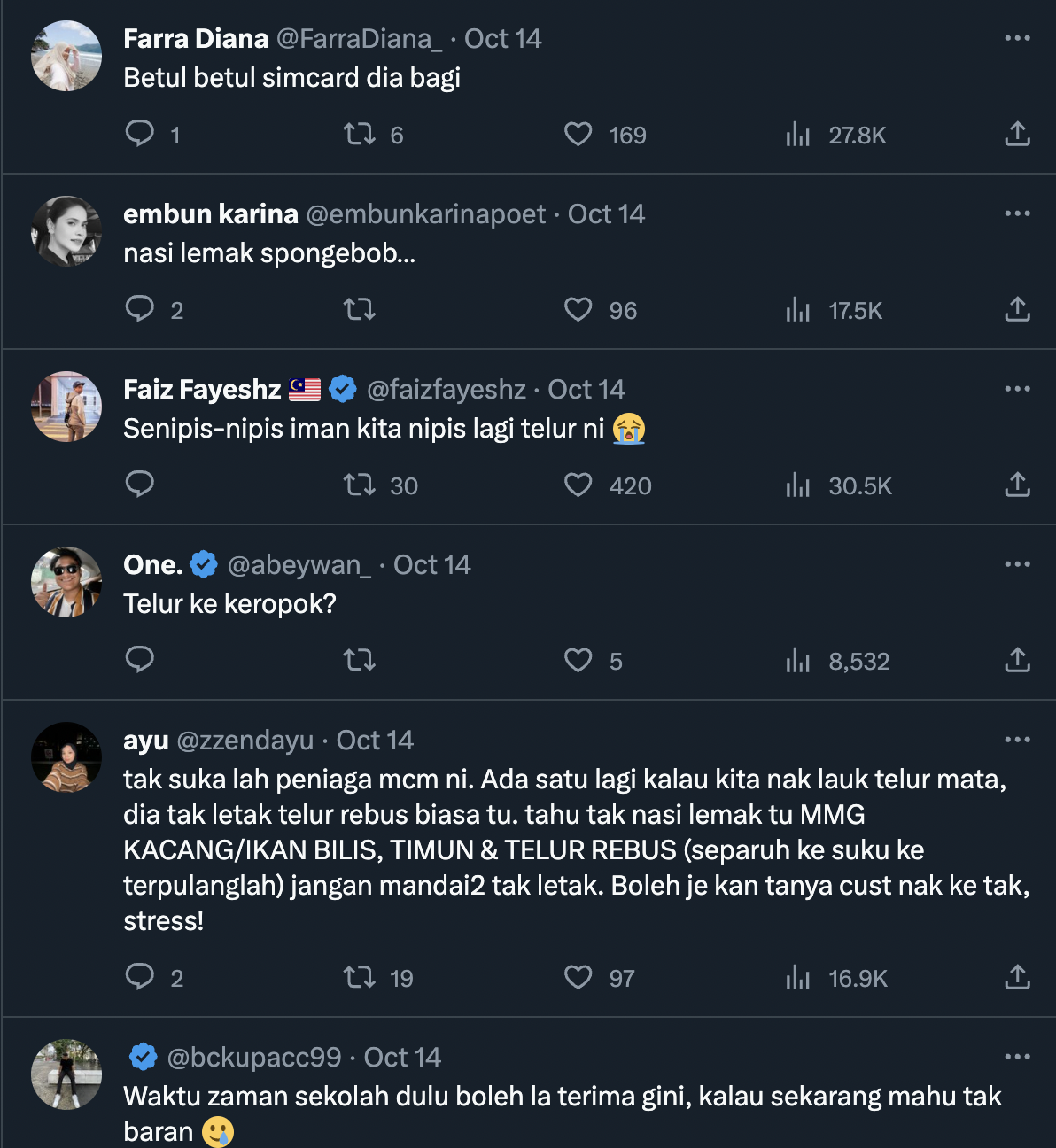 Namun, tular di laman X baru-baru ini apabila seorang lelaki berkongsi rupa bentuk telur yang diterimanya selepas membeli nasi lemak bungkus telah mendapat perhatian ramai.