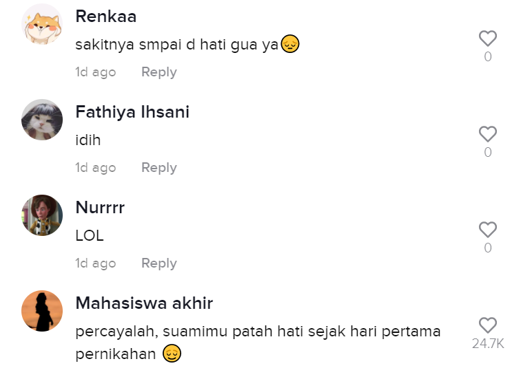 Berikut adalah komen-komen daripada netizen di TikTok: