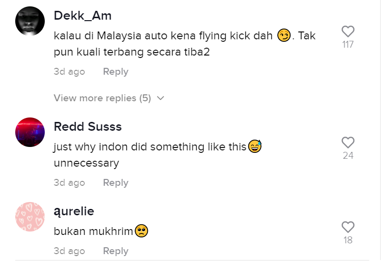 "Kalau di Malaysia auto kena flying kick dah. Tak pun kuali terbang secara tiba-tiba" – Netizen