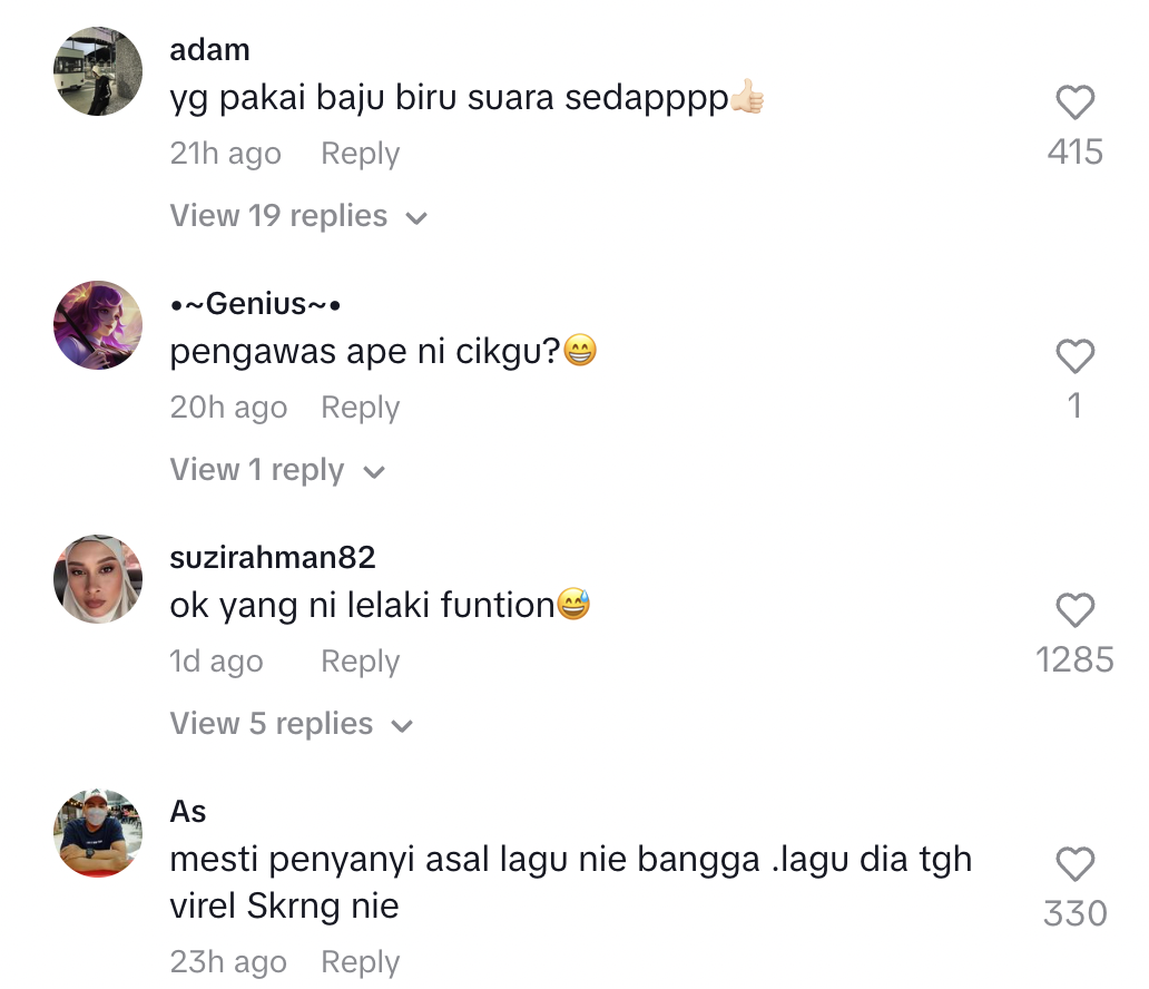 "Mesti penyanyi asal lagu ni bangga. Lagu dia tengah viral sekarang ni" – Netizen