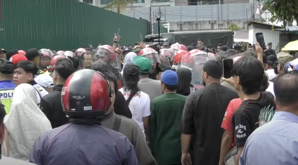 Penduduk dilihat cuba menghalang pihak berkuasa daripada meneruskan proses pengosongan.